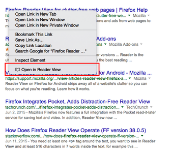เปิดในโหมดผู้อ่านเป็นส่วนขยายของ Firefox ที่ออกแบบมาเพื่อทำให้การเข้าถึงโหมดผู้อ่านในตัวของเบราว์เซอร์สะดวกขึ้น เครื่องมือนี้ช่วยให้ผู้ใช้สามารถสลับไปยังรูปแบบการอ่านที่เรียบง่ายได้อย่างง่ายดายจากเมนูบริบทที่คลิกขวา โดยการเปลี่ยนเส้นทางผลการค้นหาของ Google มันทำให้มั่นใจได้ว่าผู้ใช้สามารถเปิดบทความและเนื้อหาอื่น ๆ ในสภาพแวดล้อมที่ปราศจากสิ่งรบกวน ส่งเสริมประสบการณ์การอ่านที่มุ่งเน้นมากขึ้น